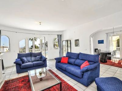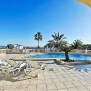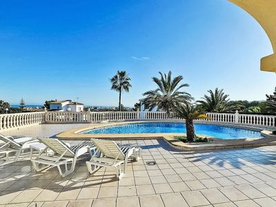 Les espaces de vie extérieurs sont vraiment exceptionnels. Une grande terrasse surélevée offre la plateforme idéale pour profiter des vues panoramiques sur la côte et les montagnes environnantes. La piscine privée est la pièce maîtresse de la terrasse, entourée de beaucoup d'espace pour des chaises longues. Pour ceux qui recherchent de l'ombre, la villa dispose d'une magnifique naya voûtée, une terrasse couverte avec des arches et des colonnes élégantes, où l'on peut profiter de repas en plein air ou d'une lecture tranquille l'après-midi. Le jardin est méticuleusement paysagé avec des pelouses vertes, des palmiers matures et diverses plantes méditerranéennes, le tout clôturé pour assurer un maximum d'intimité et de sécurité.