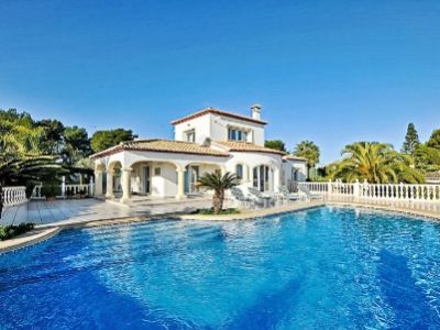 Cette villa méditerranéenne traditionnelle est située dans un quartier résidentiel calme et bien établi de Dénia, offrant une combinaison parfaite d'architecture espagnole classique et d'un agencement fonctionnel et confortable. La propriété est immédiatement reconnaissable à sa façade blanche immaculée, accentuée par d'authentiques tuiles en terre cuite et des détails revêtus de pierre à la base, reflétant le style intemporel de la région de la Marina Alta.