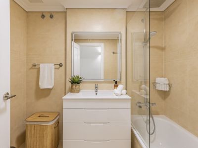 Cet appartement impeccable est situé dans le prestigieux complexe résidentiel Golden Beach 2 à Jávea, à quelques pas de la plage de l'Arenal. La propriété se distingue par son design contemporain et son excellent état, offrant une atmosphère lumineuse et accueillante. L'intérieur est distribué en un spacieux salon-salle à manger à aire ouverte qui communique directement avec une généreuse terrasse privée, idéale pour profiter du climat méditerranéen. La cuisine est entièrement équipée avec des appareils modernes et dispose d'une buanderie séparée.