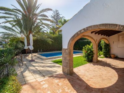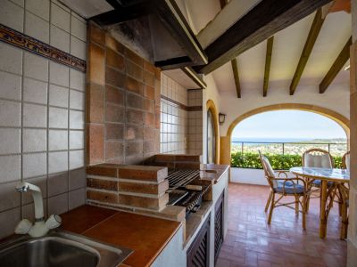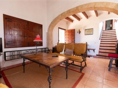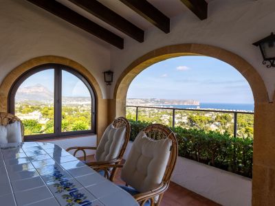 Ce chalet de style méditerranéen traditionnel est situé sur les hauteurs de Jávea, offrant des vues panoramiques exceptionnelles sur la mer et l'emblématique Montgó. La propriété se distingue par son architecture classique, comprenant des poutres en bois apparentes, des sols en terre cuite et de majestueux arcs en pierre de Tosca naturelle. L'intérieur est réparti en pièces chaleureuses, avec un salon principal agrémenté d'une cheminée traditionnelle et une cuisine indépendante entièrement équipée. Les extérieurs sont conçus pour profiter du climat local, avec une grande naya couverte avec coin barbecue intégré, une piscine privée entourée de terrasses et un jardin en restanques avec une végétation mature.