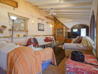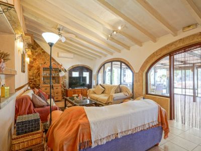 Cette villa traditionnelle est située sur un terrain plat et ensoleillé de 1 000 m2 dans le quartier calme de Tarraula à Jávea. Orientée plein sud, elle offre une vue imprenable sur les collines boisées environnantes. La maison s'ouvre sur une naya très spacieuse qui mène au salon-salle à manger avec bar, une pièce de caractère avec ses arches en pierre de Tosca et ses hauts plafonds. Une cuisine moderne et spacieuse se trouve juste à côté.