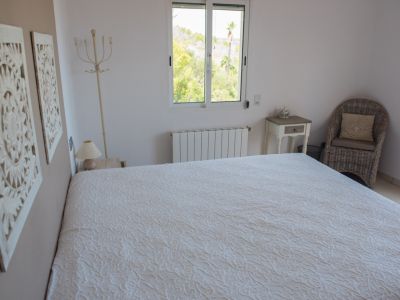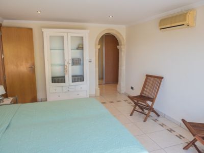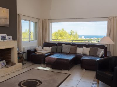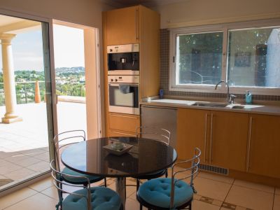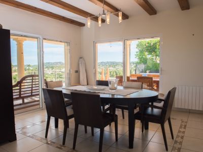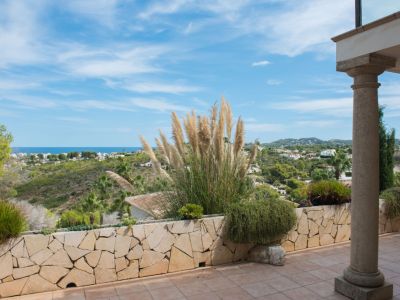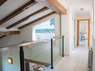 Cette villa individuelle à Jávea offre un mélange exceptionnel de confort et de vues panoramiques sur la mer Méditerranée. La propriété est répartie sur plusieurs niveaux, profitant du terrain en pente pour garantir des vues dégagées depuis presque toutes les pièces. Au rez-de-chaussée, le salon se distingue par ses hauts plafonds avec poutres en bois et une cheminée en pierre, créant une atmosphère chaleureuse qui s'ouvre sur une grande terrasse couverte. La cuisine principale est entièrement équipée avec des appareils haut de gamme et dispose d'un coin petit-déjeuner avec accès direct à l'extérieur.