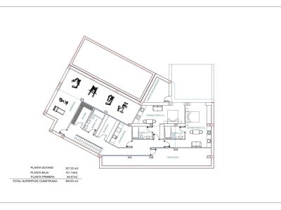 Cette propriété exceptionnelle de construction neuve à Jávea représente le sommet de l'architecture méditerranéenne moderne. Répartie sur trois niveaux soigneusement conçus, la villa offre un total de 393 m² de surface construite sur un terrain garantissant intimité et vues dégagées. Le rez-de-chaussée se distingue par son concept ouvert, intégrant un grand salon-salle à manger avec une cuisine design et une buanderie séparée, communiquant directement avec les vastes terrasses et l'espace piscine. Ce niveau comprend également une chambre avec salle de bain attenante et des toilettes invités.