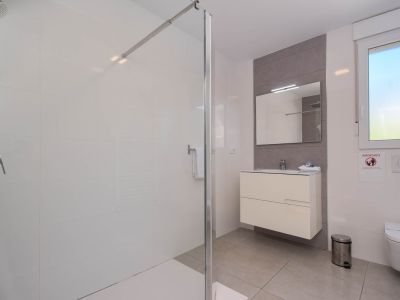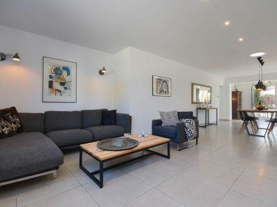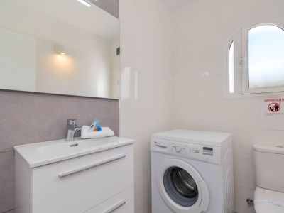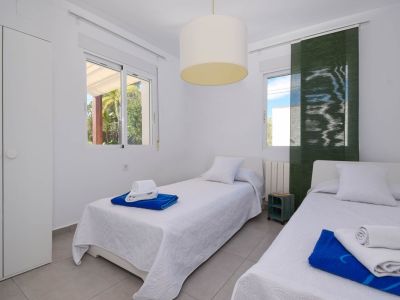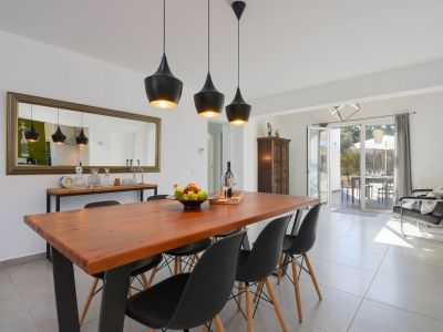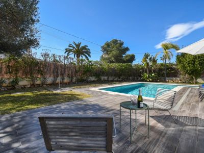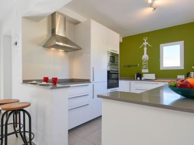 Cette villa de plain-pied, récemment rénovée, offre un design contemporain et fonctionnel dans l'un des quartiers les plus calmes de Jávea. La propriété se distribue en un vaste espace ouvert intégrant le salon, la salle à manger et une cuisine américaine entièrement équipée, se distinguant par son mur d'accent vert moderne et ses appareils intégrés. La partie nuit se compose de trois chambres lumineuses, équipées de la climatisation et de placards intégrés, et de deux salles de bains modernes avec douches à l'italienne, dont l'une comprend un espace buanderie intégré.